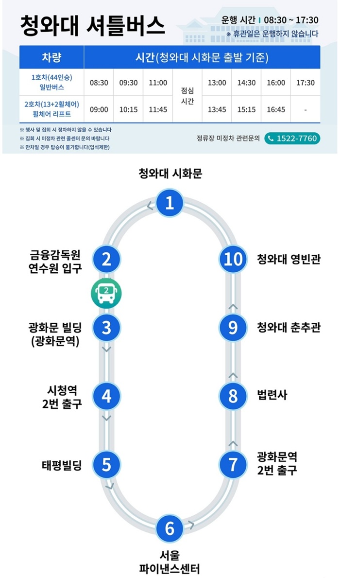 청와대 셔틀버스 운행 정보